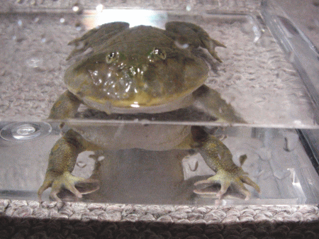 これくらいの深さがカエルも息するのが楽だと思うけど、深くした方がカエルの動きが楽しめるという意見もある。
